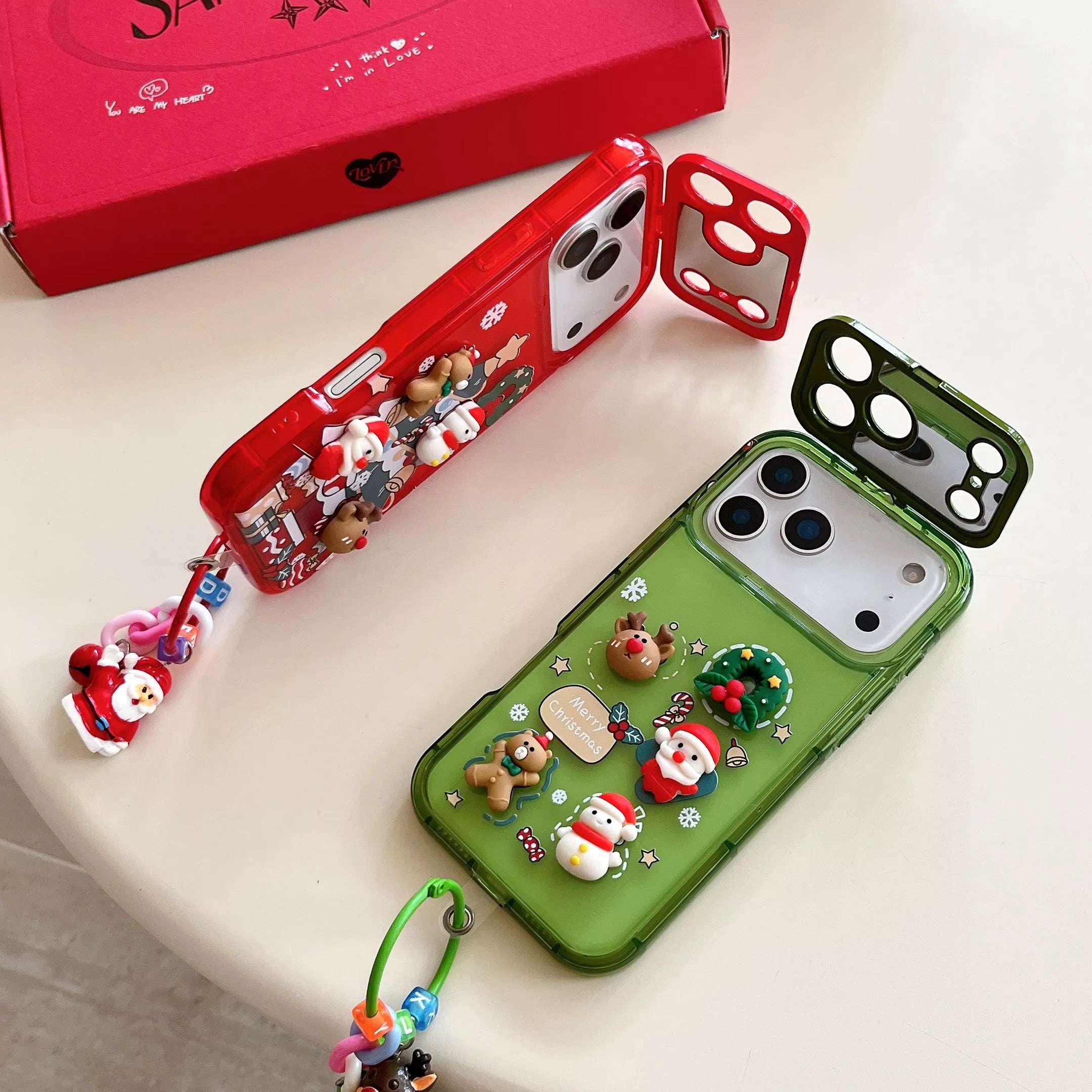 Choose from Holiday Green or Festive Wine Red — each case is dressed in joyful 3D Christmas magic: Santa, reindeer, festive cookies, and a tree full of holiday cheer. Every glance feels like unwrapping a gift.