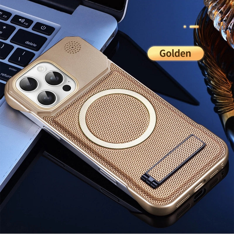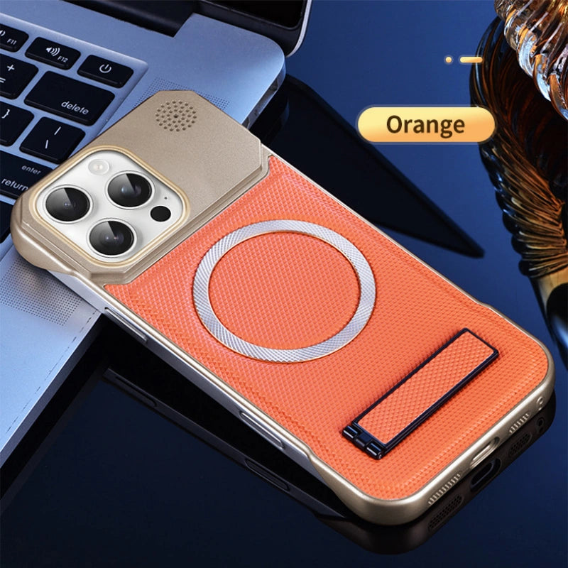 Frameless and structured — this case features a leather-like textured PC shell, magnetic alignment, hidden kickstand, and subtle aromatherapy. Designed to look premium, feel secure, and perform every day.