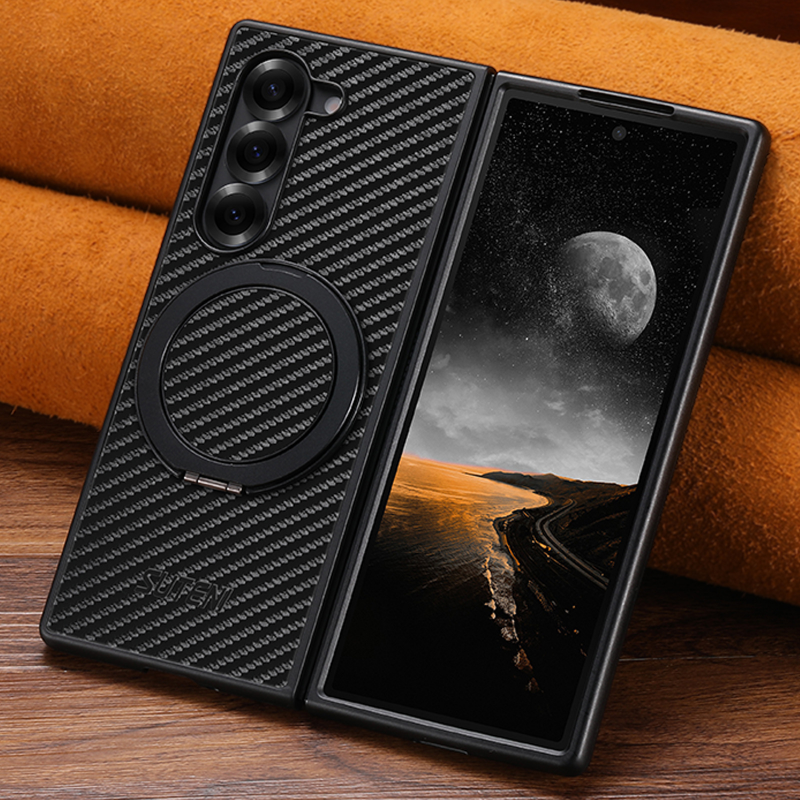 Crafted with oil wax PU leather, the case features a 360° rotating stand ring that doubles as a kickstand — perfect for hands-free videos, calls, or reading on your Galaxy Z Fold 7/6/5.