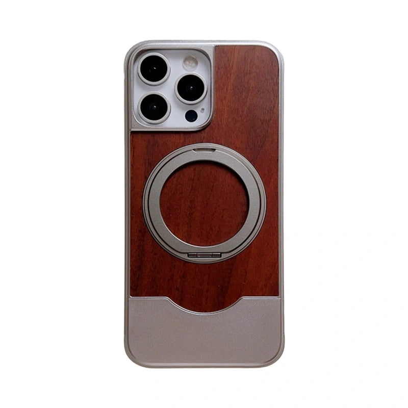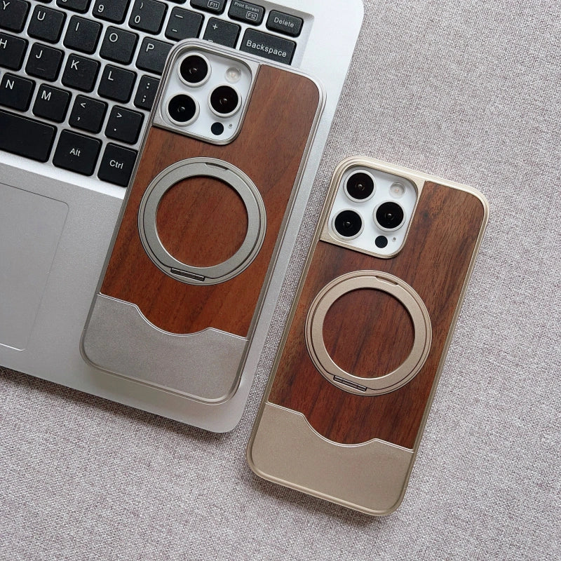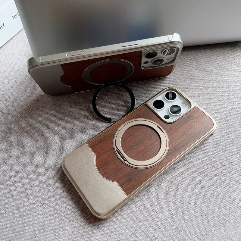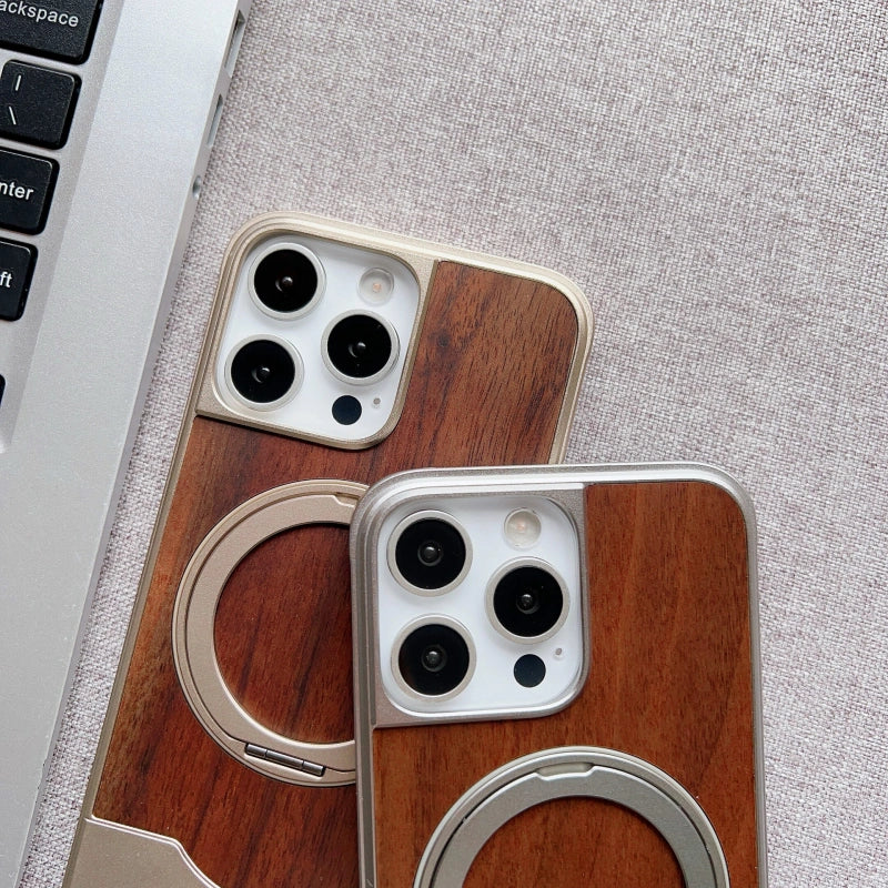 The electroplated metal stand rotates with fluid precision. Use it to command your video calls, enjoy hands-free streaming, or get a confident grip on the move. When you’re done, it folds perfectly flat, disappearing into the wood grain. It’s function that feels like magic.