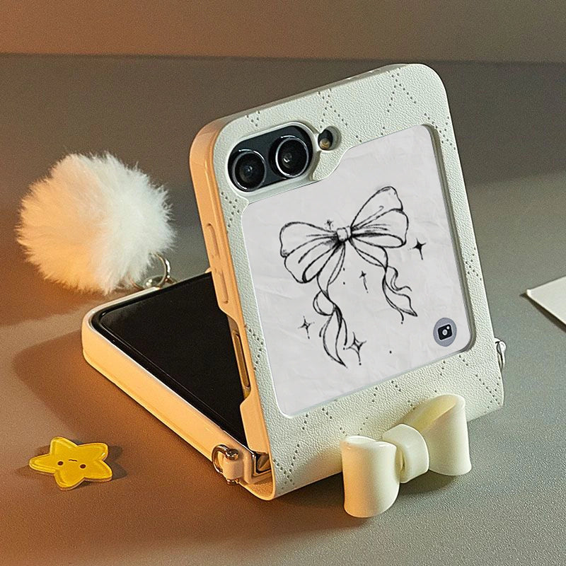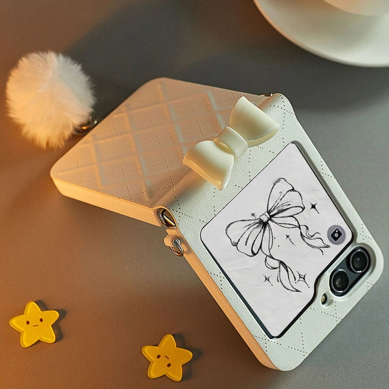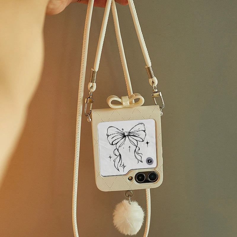 A quilted 3D bow, a fluffy bunny-tail charm, and a hands-free crossbody design — your Z Flip case is now a mini fashion accessory.