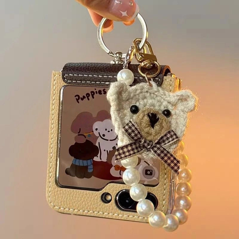 Snuggly meets stylish. The crocheted bear charm adds a handmade warmth to your every flip.
